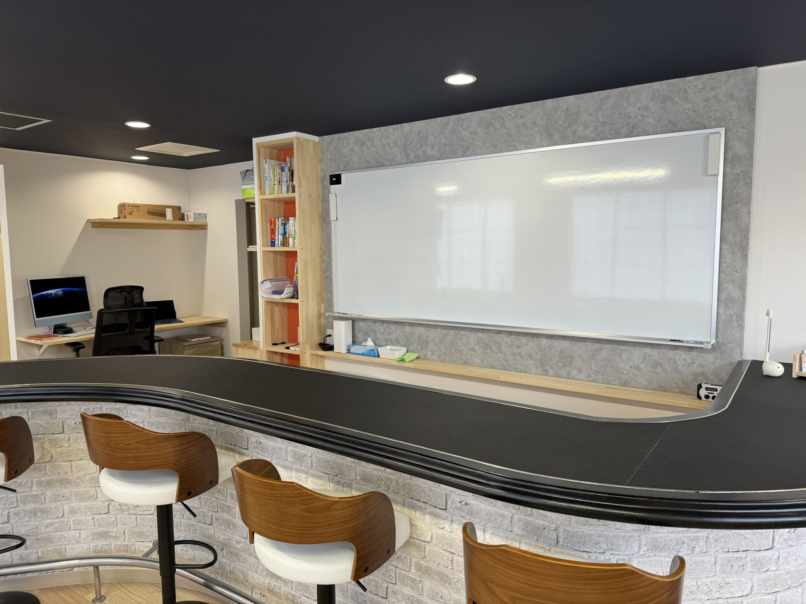 また、当塾ではこの個別形式を更に推し進めカウンターを利用した対面指導を採用しました。多くの個別指導塾で採用されている授業方式は講師が生徒の横に座って指導するというものですが、この方式には生徒の表情が観察しづらいという決定的な弱点があります。対面形式の指導であれば生徒の表情や目線の動きをしっかりと捉えることが可能となり、「どこで悩んでいるのか」「何を教えて欲しいのか」を随時把握しながら生徒一人ひとりに合わせた最適な授業の提供を実現することが出来ます。