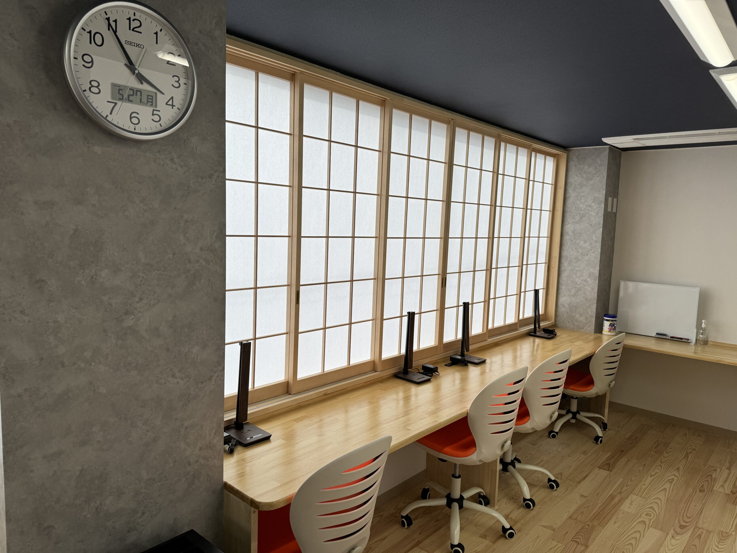 空き店舗だったテナントを学習塾向けにフルリノベーションするにあたり、生徒にとって本当に必要なものは何かを考え抜いた教室環境をご用意しました。そんな未来創造塾ネオ寺子屋の教室設備をご紹介致します。